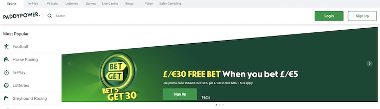| Paddy Power | 4.75/5 | Bet £5, Get £30 Free Bet | Money Back Offers and Daily Promotions |